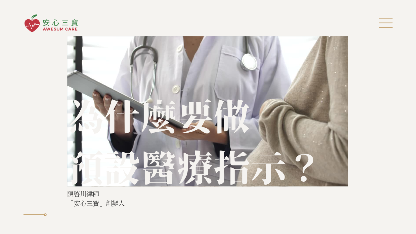 許多人希望在他們無法自己做出決策的情況下,仍然能夠掌握自己的醫療命運。「預設醫療指示」可以確保您的意願得到尊重,無論是拒絕某些侵入性治療還是選擇自然死亡的方式。