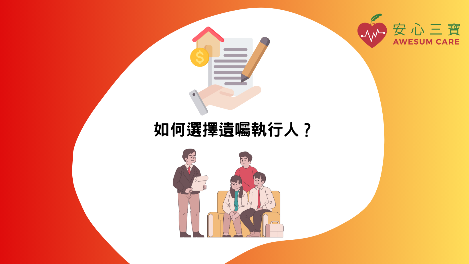 選擇遺囑執行人的學問有很多,建議徵詢專業的律師意見,確保你的平安紙能真正保障你和家人的權益。